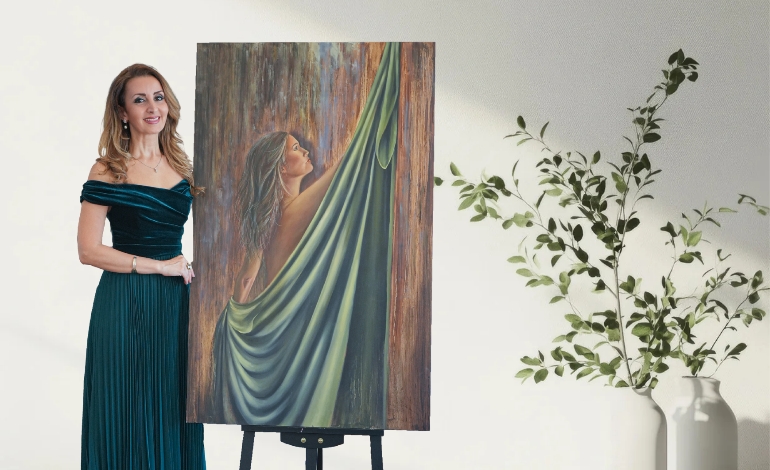 In addition to painting, Nazanin is also a musician. Her specialized instruments are guitar and piano, and after moving to Canada, she began playing the harp, which she performs at events such as weddings.
