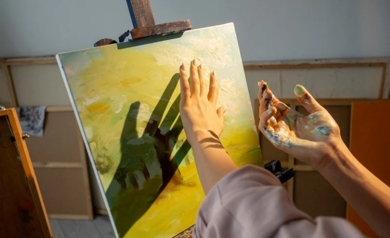 Students experiment with combining various materials and techniques to create textured, layered artwork that crosses traditional boundaries, encouraging creative problem-solving.